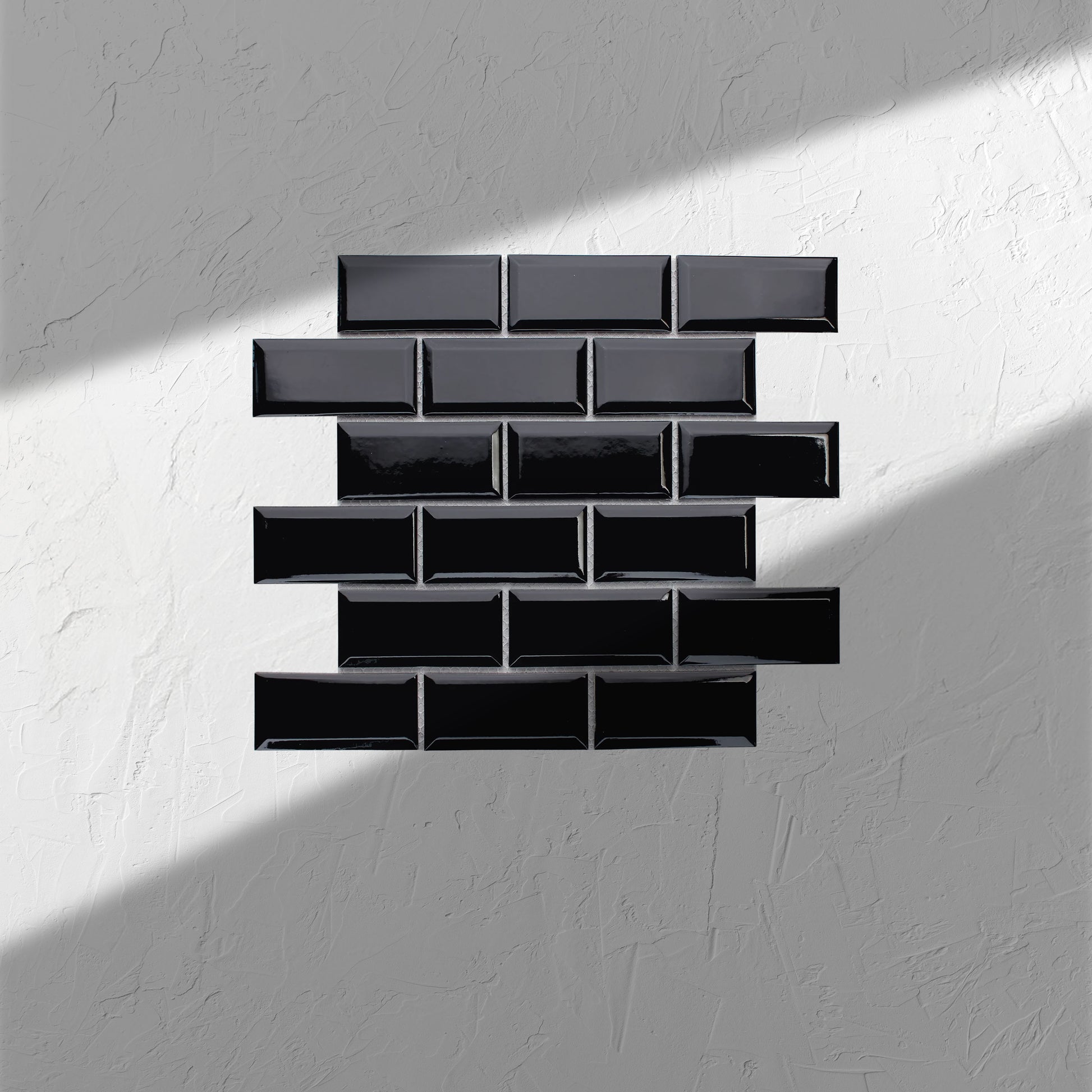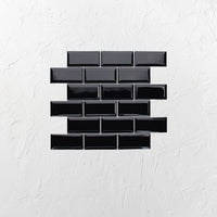 Made from durable black gloss glazed porcelain, these rectangular tiles feature a bevelled edge for a sleek and modern look. Measuring 45x95mm, these tiles are both stylish and versatile, making them perfect for any room in your home. Upgrade your space with these high-quality tiles today.