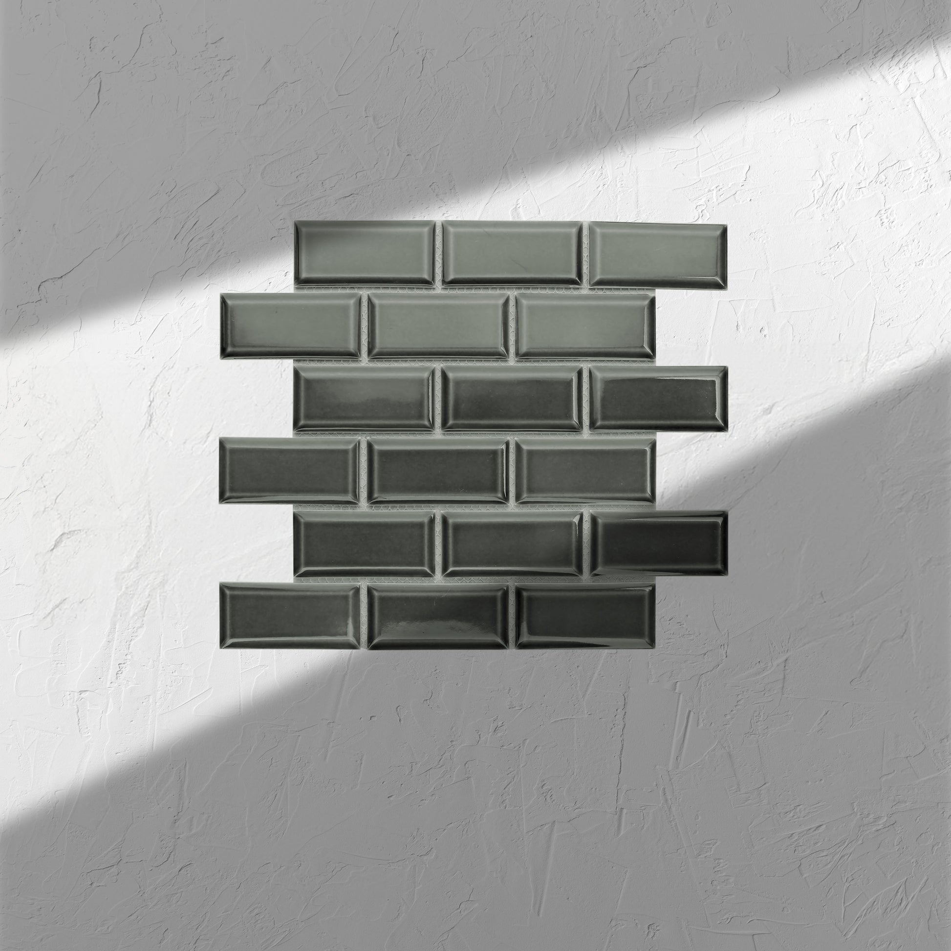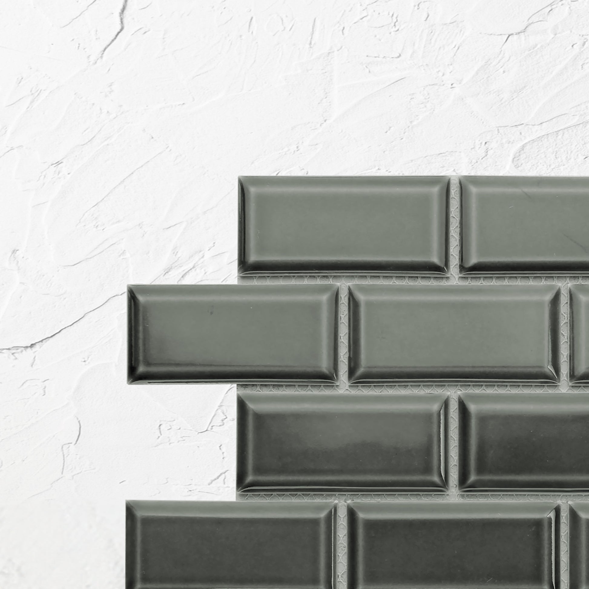 Dark Grey Gloss Glazed Porcelain Rectangle Bevelled Edge 45x95mm