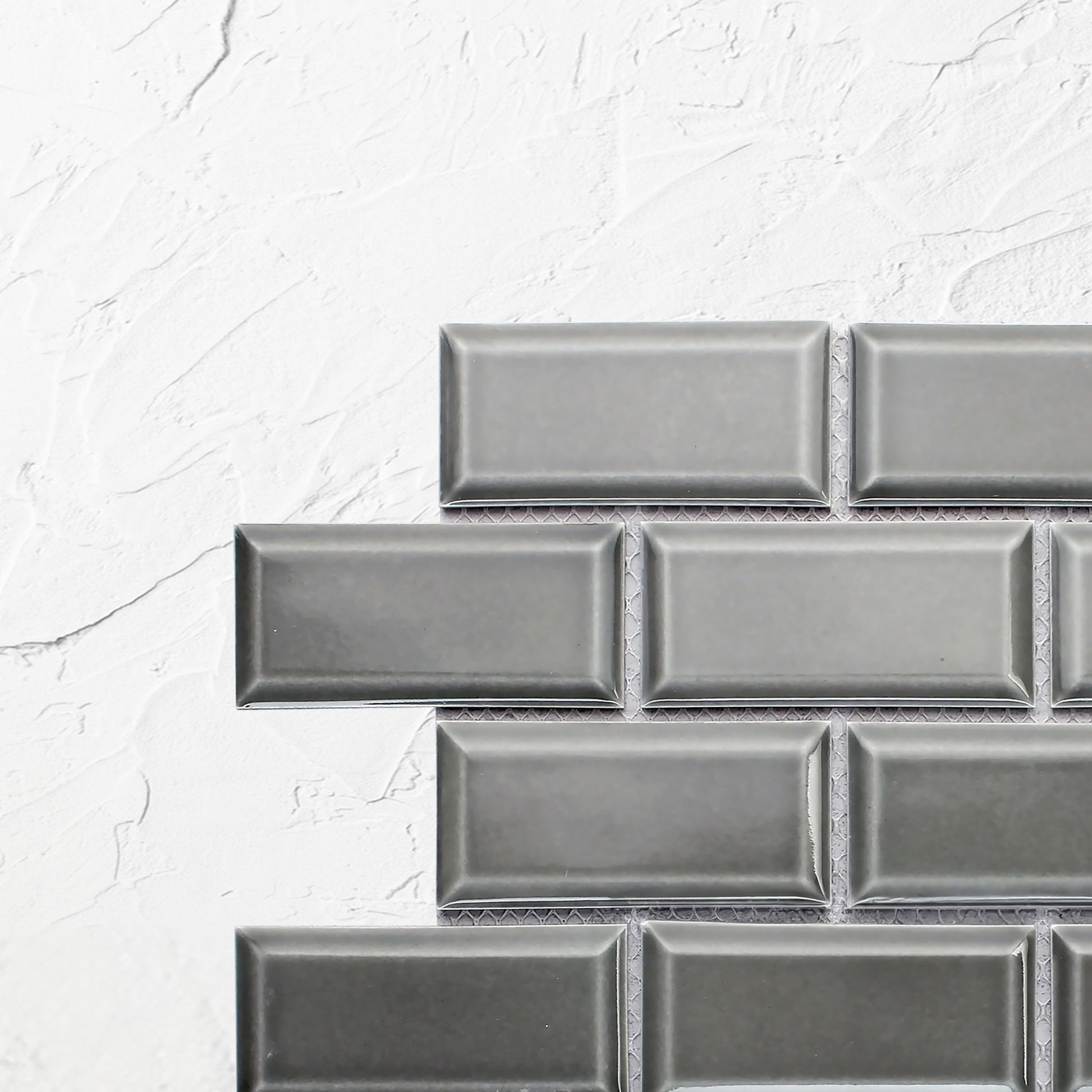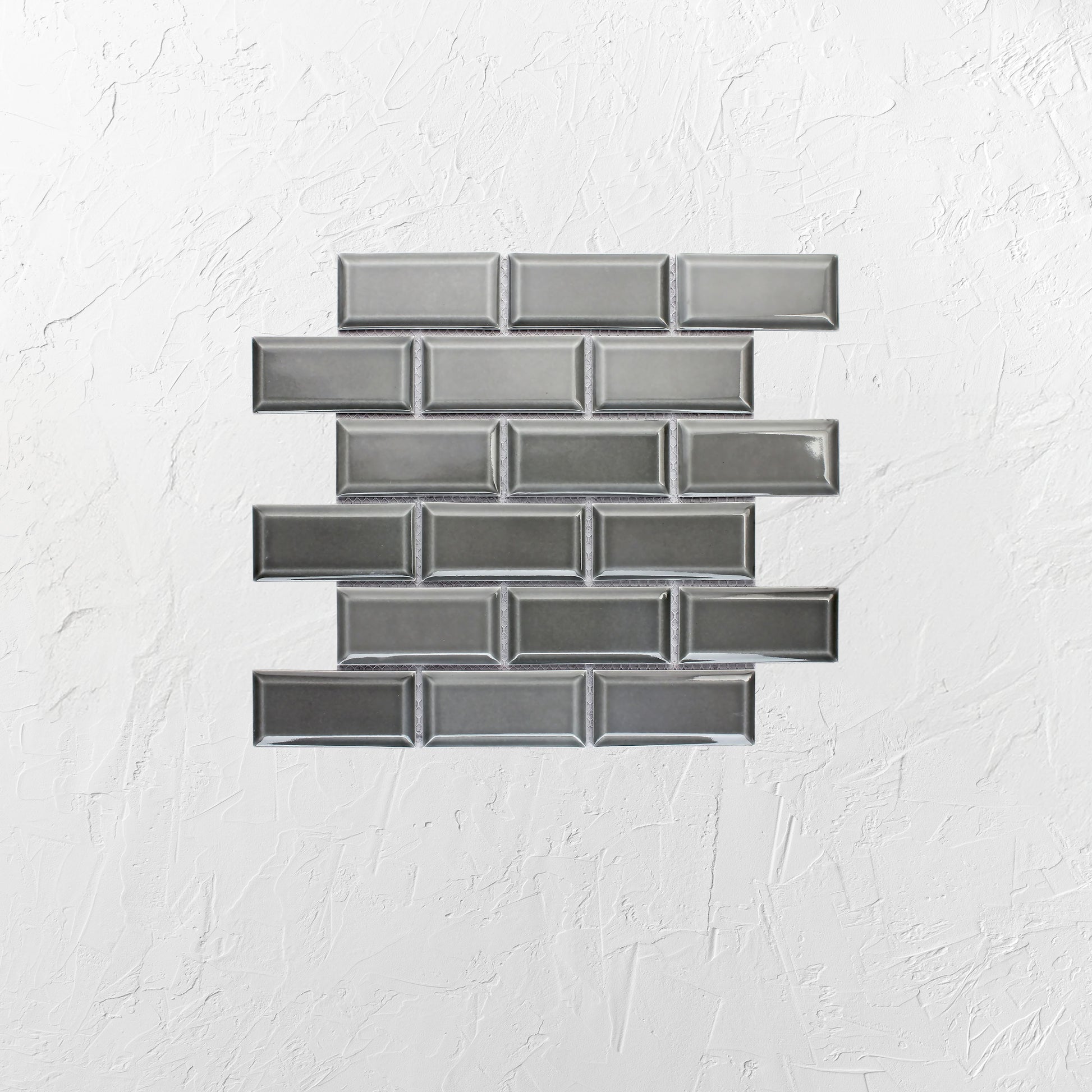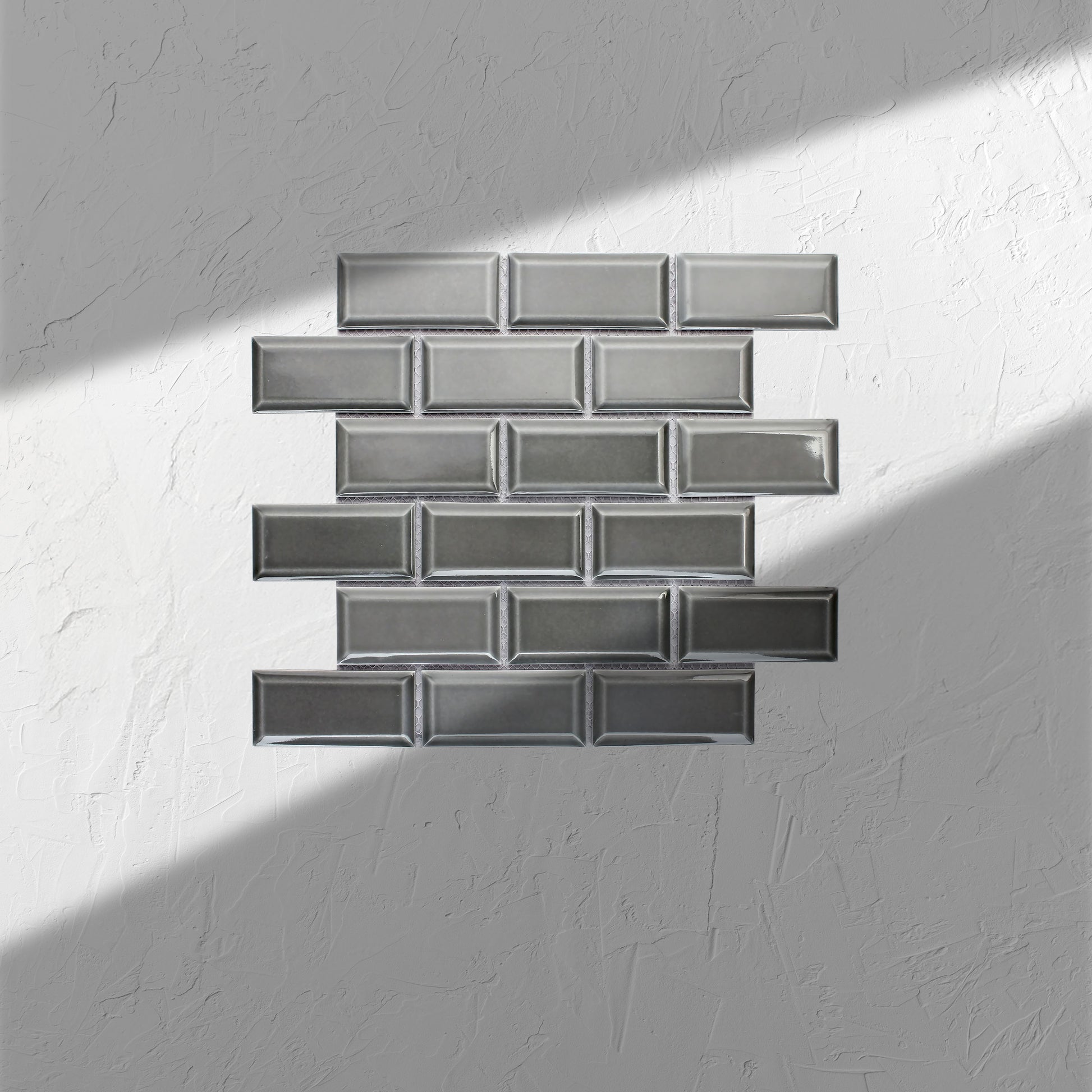 Medium Grey Gloss Glazed Porcelain Rectangle Bevelled Edge 45x95mm